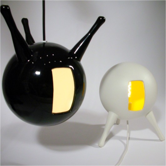 lighting design. The round lamp is made of ceramics and can either be